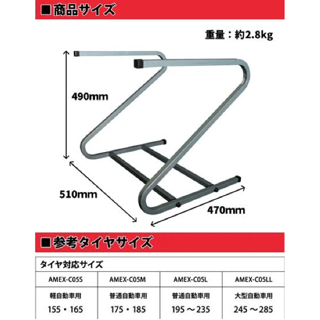 タイヤラック 195〜235mm 普通自動車タイヤ対応 AMEX-C05L
