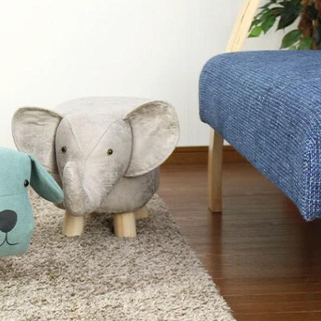 かわいいサイズのアニマルスツール ぞう ソファ周りに置いて使えばオットマンやサイドテーブルにも インテリアにもオススメ 脚裏には傷つけ防止のためのクッション付き。