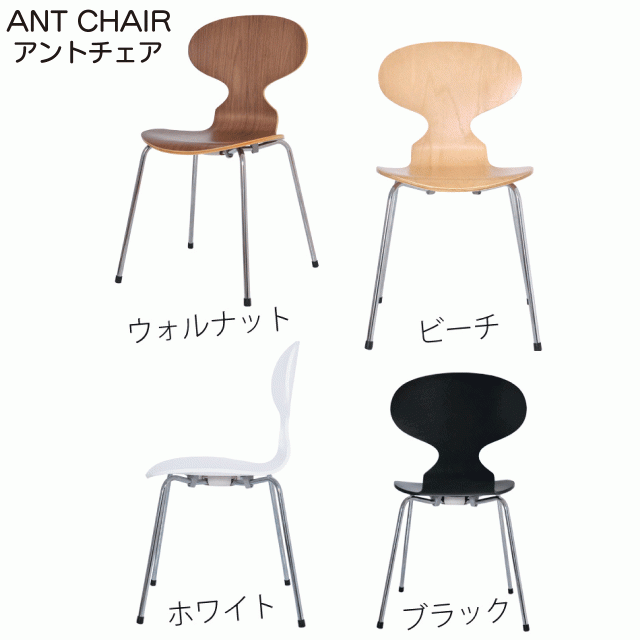 アントチェア 4カラー ウォルナット ピーチ ホワイト ブラック アルネ・ヤコブセン デザインチェア 3次元成形 名作チェア お洒落 リプロダクト品 スタッキング可能 完成品 送料無料