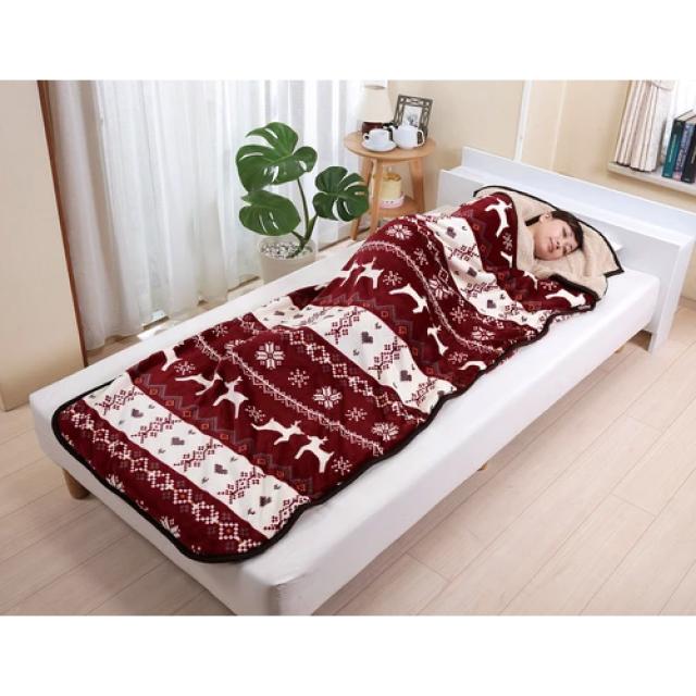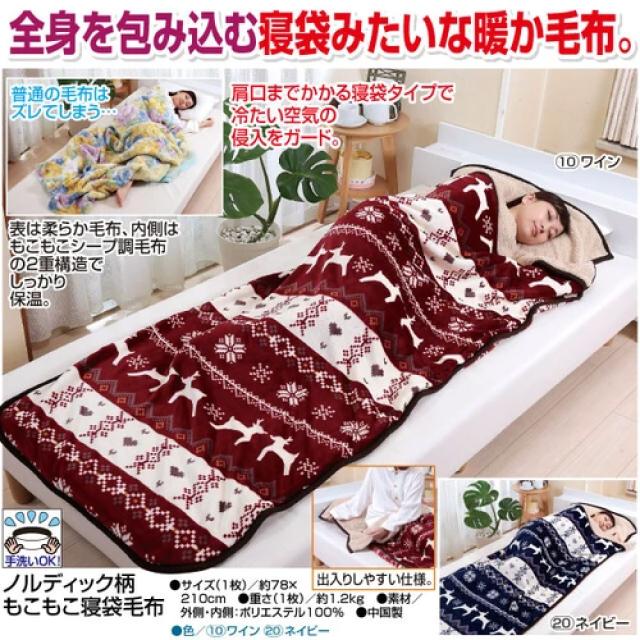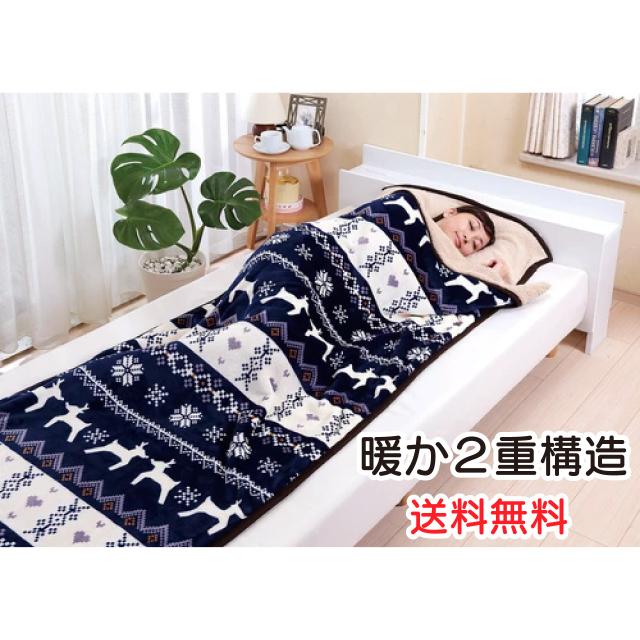 ノルディック柄 もこもこ寝袋毛布 ネイビー 寝袋タイプ 2重構造 暖かい 洗える 手洗いOK あったかい シングル プレゼント 送料無料