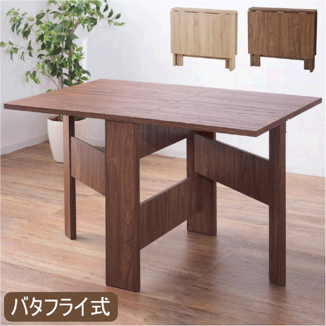 フォールディング ダイニングテーブル 2カラー ナチュラル ウォルナット 折りたたみ バタフライ デスク テーブル 机 コンパクト 来客 省スペース W120×D80×H72cm ワークスペース 送料無料