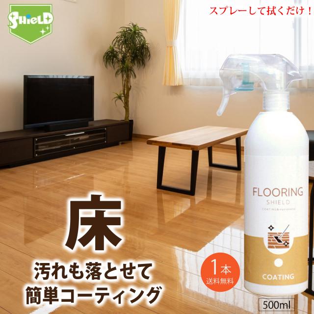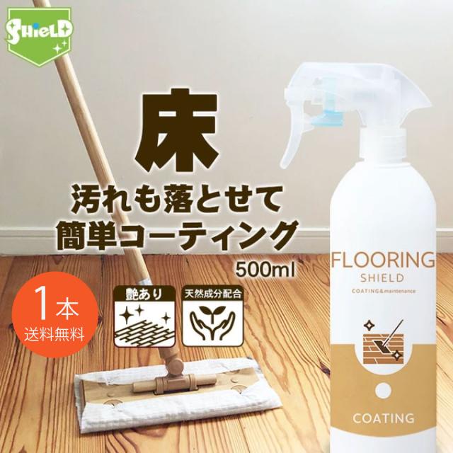 フローリング 掃除 床 フロア コーティング剤 FLOORING SHIELD 艶 500ml×1本 クリーナー 日本製 撥水コーティング 撥水スプレー 簡単 フローリング洗剤 大掃除 ワックス 汚れ防止 リビング キッチン