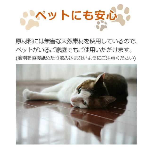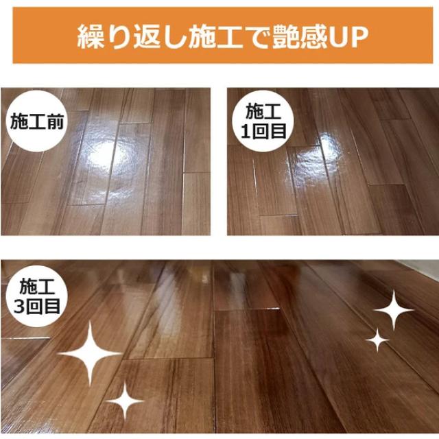 - スプレー式で、匂いも強く無く、モップで伸ばすように拭くだけで、かなり綺麗になりました。 まだ一度しか使用していませんが、ラクラク磨けるので、気持ちまでリフレッシュ出来ました。お勧めイチオシです!
