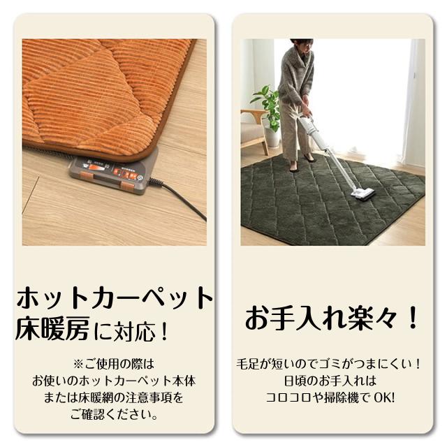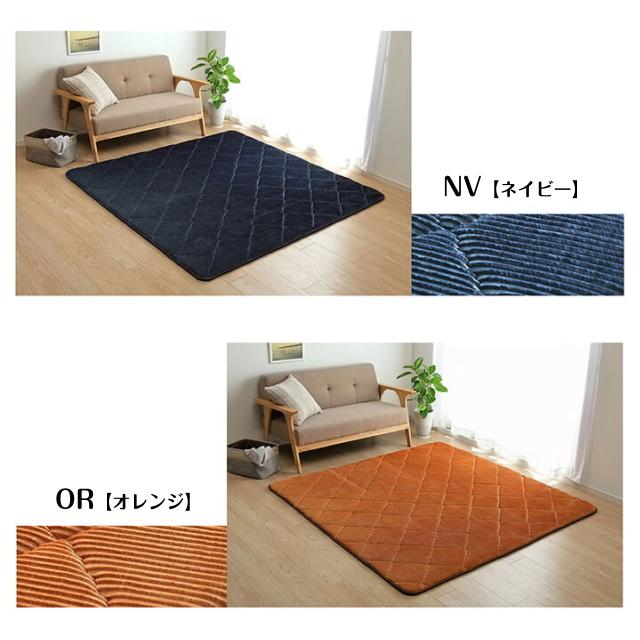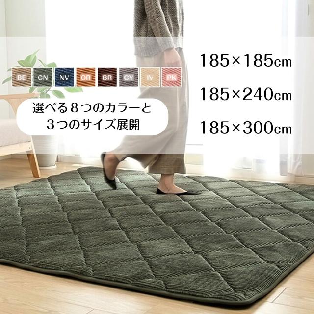 185×185cm カーペット ラグ キルトラグ コーデュロイ 絨毯 無地 秋冬 ホットカーペット 防音 遮音 オレンジ グリーン ベージュ グレー ブラウン ネイビー ピンク アイボリー 柔かい 弾力 滑り止め加工