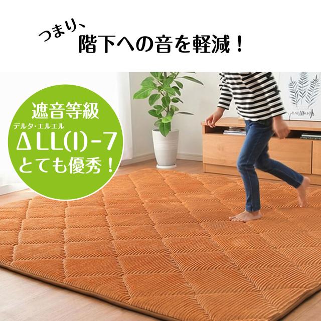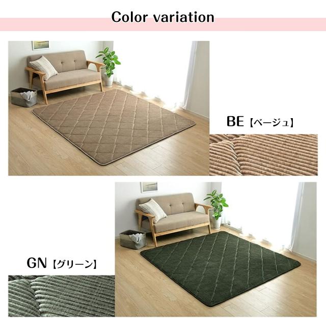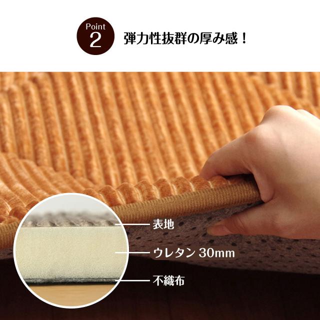 8色から選べるコーデュロイ調のカーペット。中材に30mmのウレタンフォームを使用、下階に音が響きにくい防音効果があります。ホットカーペットにも対応、こたつ敷布団としてもオススメ!
