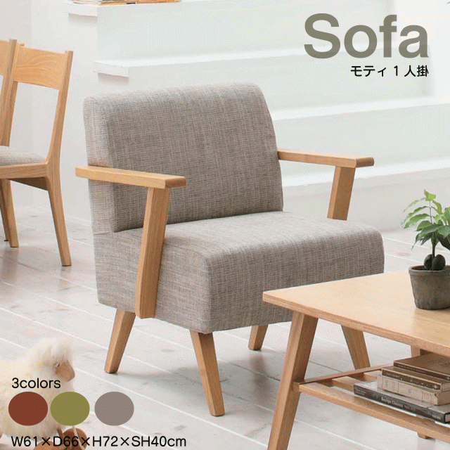 モティ 一人掛け ソファ 3カラー ブラウン グリーン ナチュラル W61×D66×H72×SH40cm ソファー おしゃれ 安い 北欧 1人掛け sofa 送料無料