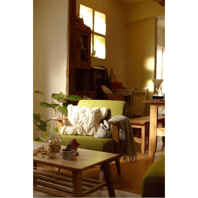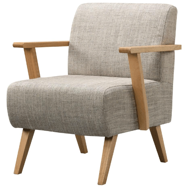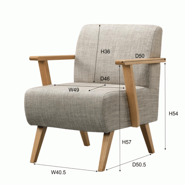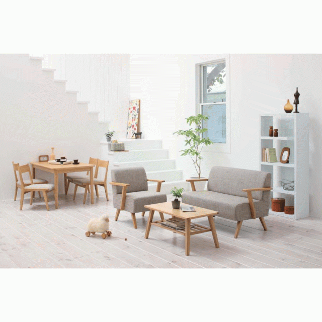●肘掛と脚のみ天然木が顔をのぞかせた、北欧ナチュラルを代表するような心落ち着くデザインが魅力。