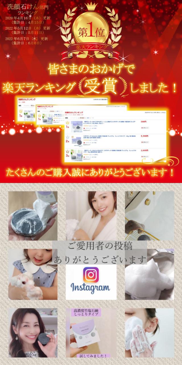 リダクティオ 高濃度 竹塩石鹸 プレミアム 1/4サイズ 15g お試し 無添加石鹸 洗顔 石鹸 シミ ニキビ アトピー 敏感肌 乾燥肌 毛穴 保湿 石けん エイジングケア 塩石鹸 泡立てネット付き 送料無料 ,