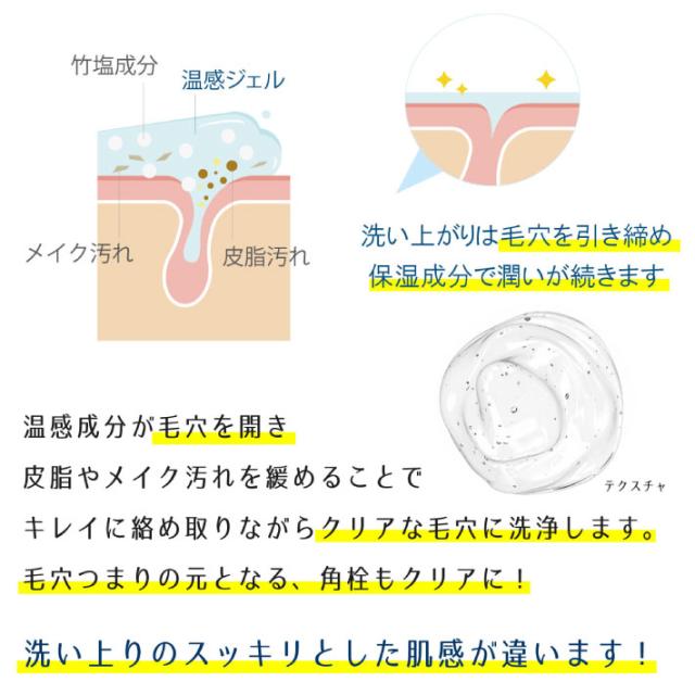 肌をやさしく守りながら、しっかり落とす 無添加ホットクレンジングジェル 毛穴 開き 敏感肌 還元竹塩配合 温感ジェル ヒアルロン酸 プラセンタ 還元竹塩配合