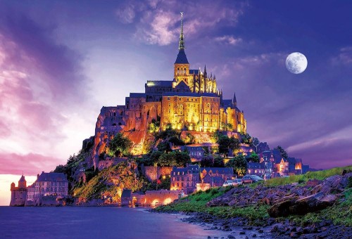 人気の観光地パリの名所をジグソーパズルで楽しもう! 海に浮かぶ修道院が暮れ行く空に映える