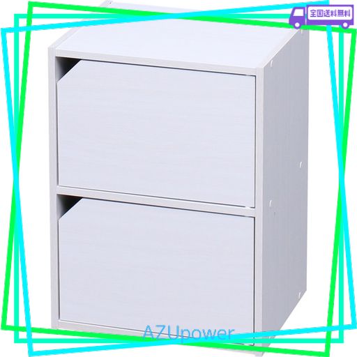 アイリスオーヤマ カラーボックス 収納ボックス 本棚 2段 扉付き 幅36.6×奥行29×高さ49.4CM オフホワイト モジュールボックス MDB-2D