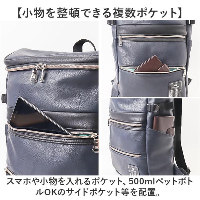| 商品説明 | 【おしゃれに持ち歩ける相棒】 ・すっきりまとまるスマートシルエット。MADDEN EQUIPMENT ボックスリュック。 【ビジネスもデイリーユースもお任せ】 ・フェイクレザーを使い、品よく仕上げたアイテム。落ち着いた風合いで、シーンを問わずマッチ◎ 【ガバっと開いて出し入れスムーズ】 ・左右どちらからも開くダブルファスナーで上部が180度オープン。取り出しやすいボックス型。 【A4もノートPCもラクラク】 ・A4サイズの書類がすっぽり。デバイス用のクッションスリーブも装備した容量約17L。 【嬉しいメイン直結ファスナー付き】 ・サイドファスナーを開くと、メインルームにクイックアクセス。背負ったまま小物を取り出し◎ 【小物を整頓できる複数ポケット】 ・スマホや小物を入れるポケット、500mlペットボトルOKのサイドポケット等を配置。 【荷物の量に合わせて横マチを調節】 ・両サイドに、フィット感を調節できるベルト付き。フォルムもキープ。 【負担をかけず背負い心地快適】 ・背面とショルダーベルトに、クッションをプラス。ムレにくいメッシュ仕様。 【リュックを下ろすシーンで便利】 ・電車の中などで下ろす際や、混雑した車内で手持ちしやすい持ち手付き。 【面倒なお手入れ不要で手軽に使える】 ・本革のような特別なお手入れは必要なく、汚れなどは拭き取るだけ。普段使いにぴったり。 【視認性の高いエメラルドの内生地】 ・ブランド創業の地、コロラド州にあるエメラルド湖がテーマ。機能性とブランドの世界観を演出。 【ポケット仕様】 ・内側:面ファスナーベルト付きクッションスリーブ×1、オープンポケット×1、スマホ用クッションポケット×1 ・前面:ファスナーポケット×2 ・サイド:オープンポケット×2 |
