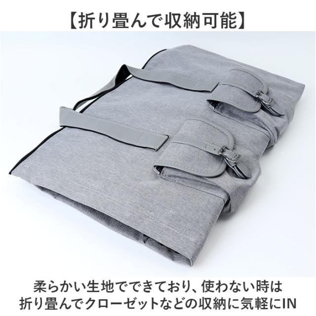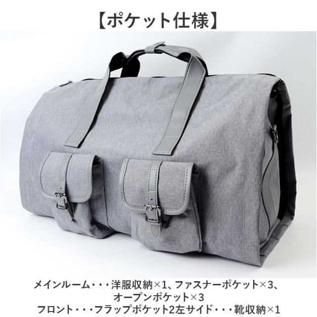 | 商品説明 | 【旅行や出張の強い味方】 ・スーツなどシワをつけたくない衣類もOK!ボストンバッグの機能もあるガーメントバッグ 【2IN1仕様】 ・メイン部分には他の衣類や荷物の収納ができるのでボストンバックとしても使える! 【ハンガーのまま収納OK】 ・ハンガーフックを通すループ付きなので、スーツやドレスなどをハンガーのまま収納OK 【靴専用スペースあり】 ・外側には靴専用のスペースあり!独立スペースなので他の荷物を汚すことなく靴を収納できる! 【便利なポケットがたくさん】 ・内側にはネクタイや下着、靴下など、ゴチャつきがちな小物を収納できるポケット付き。 【すぐに取り出したい小物入れに】 ・フロントにはスマホやカードケースなどすぐに取り出したい小物入れに最適なポケット。 【調節可能なショルダーベルト付き】 ・取り外し可能なショルダーパット付きのベルトがあるのでショルダーにもでき持ち運び楽ちん 【キャリーケースに付けられる】 ・キャリーオンベルト付きで、キャリーケースと一緒に運べるのも嬉しいポイント。 【底鋲付き】 5点の底鋲付きなので、バッグの底が汚れにくい!自立してくれるので使いやすい◎ 【バッグの広がりを防ぐ】 ・サイドのファスナーはカチッとロックできるフック付き。移動中のバッグの広がりを防ぐ♪ 【折り畳んで収納可能】 ・柔らかい生地でできており、使わない時は折り畳んでクローゼットなどの収納に気軽にIN 【ポケット仕様】 ・メインルーム・・・洋服収納×1、ファスナーポケット×3、オープンポケット×3 ・フロント・・・フラップポケット2 ・左サイド・・・靴収納×1 |