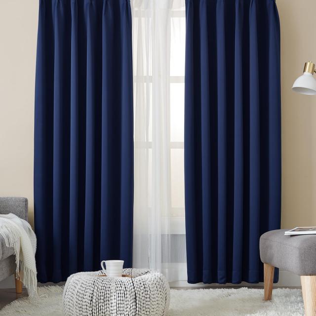 Hansleep カーテン 1級遮光 4枚セット 幅100cm丈220cm ネイビー 断熱 防寒 防音 省エネ 厚手 無地 おしゃれ 洗える リビング用 (カーテン