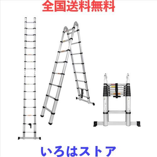 DayPlus 伸縮はしご 両用梯子 脚立最長 2.5M+2.5M 伸縮はしご最長5m 兼用脚立 スーパーラダー 折り畳み伸縮梯子 多機能アルミはしご 持ち