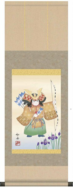 【お得クーポン配布中】 掛け軸/節句画/武者・兜/縁起武者/美原如舟/白翠会/洛彩緞子本表装/尺幅サイズ幅31.5cm/表装品質十年保証/端午の節句掛軸 初節句 こどもの日