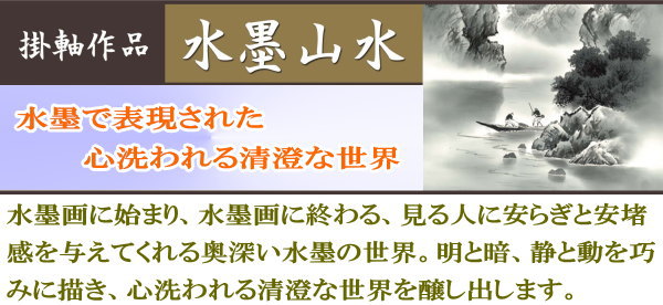 【お得クーポン配布中】 掛軸/山水画/水墨山水/上高地/熊谷千風/草夕会/正絹二丁本表装/尺五サイズ幅54.5cm/桐箱畳紙収納/表装品質十年保証