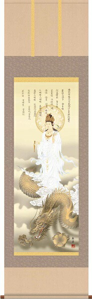 【お得クーポン配布中】 掛軸/開運画/開運龍・虎 消災龍上白衣観音/北条裕華/草夕会 洛彩緞子本表装/尺五サイズ幅54.5cm/桐箱畳紙収納/表装品質十年保証