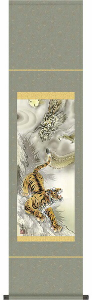 【お得クーポン配布中】 掛軸/慶祝・縁起画/虎/龍虎図/濱田嵐雪/三美会/洛彩緞子本表装/尺幅サイズ幅35cm/化粧箱収納/表装品質十年保証