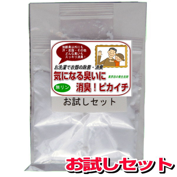 【お得クーポン配布中】ノロ・インフルエンザ猛威!ウィルス対策☆無リン☆◇メール便にて送料無料◇ 衣類の消臭・除菌の衛生洗剤「気になる臭いに消臭!ピカイチ」 5回分お試しセット