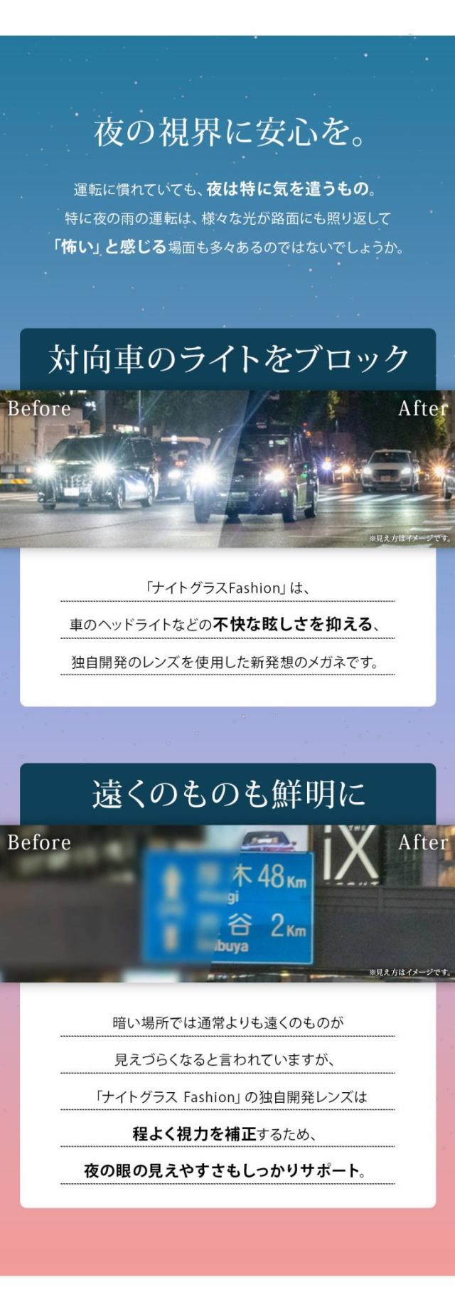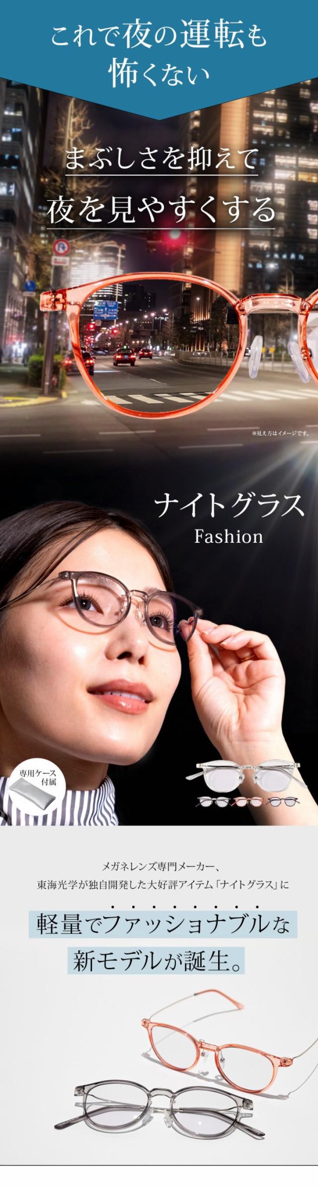 夜専用メガネ NIGHT GLASS ナイトグラス Fashion 東海光学 専用ケース付 夜間 夜用 メガネ レンズ 眼鏡 夜の運転 ディスチャージ 夜間運転 ドライブ サングラス スポーツ観戦