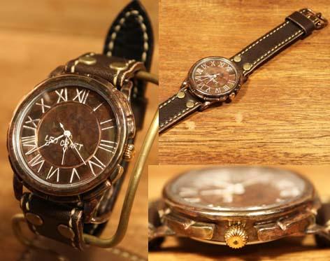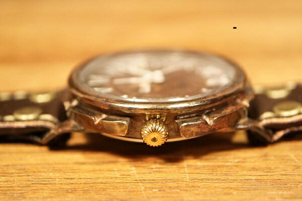 時計作家が一つ一つこだわりを持って制作した手作り時計! *シンプルな味わい どこか懐かしい雰囲気 読み取りやすいダイアル、手づくりならではの雰囲気を残しつつも、使いやすい作品になっています。 *ヨーロッパの時計台の時計をモチーフにデザインしたメンズタイプです。 大きくて見やすく、針にも古き良きヨーロッパを思わせる雰囲気があります。 *真鍮やレザーなどの素材を用い、本体ケース、文字盤、ベルト等を彫金、 レザークラフトの技術で制作し、手作業によって組み上げられた時計です。 本体ケース、文字盤、ベルトなどを手作りで制作し、 ムーブメント、針、リューズ、風防、裏蓋を既成の時計パーツを使用して手作業で組み上げています。 |