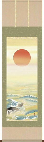 【お得クーポン配布中】 掛軸/慶祝・縁起画/旭日/旭日/門脇旬香/清瀧会/洛彩緞子本表装/尺五サイズ幅54.5cm/桐箱畳紙収納/表装品質十年保証