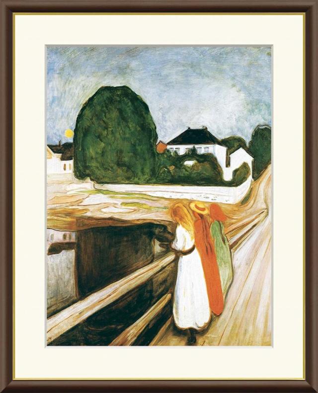 【お得クーポン配布中】 世界の名画 桟橋の上の女たち ムンク F4 42×34cm 手彩仕上 高精細巧芸美術画 インテリア 額入り 額装込 アート ギフト 巣ごもり 油絵