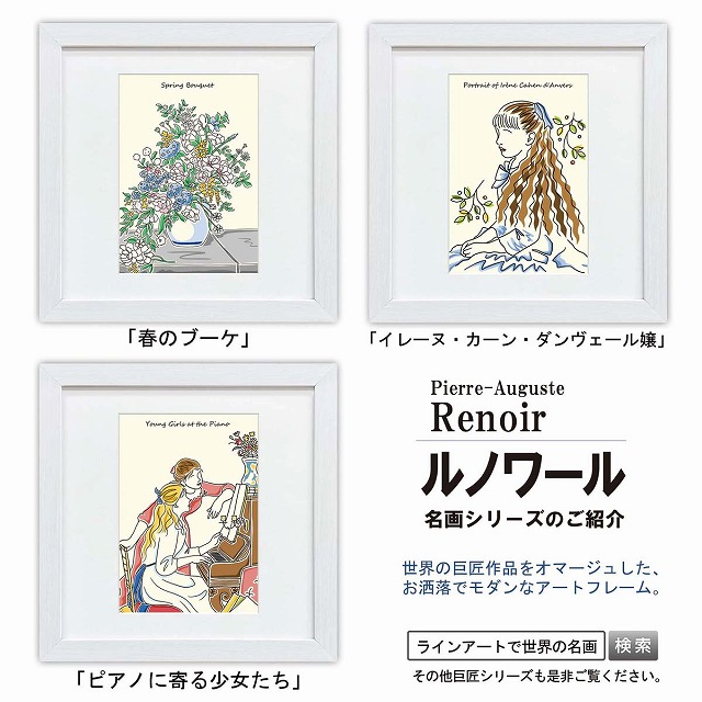 【お得クーポン配布中】 ラインアート世界の名画 ルノワール イレーヌ・カーン・ダンヴェール嬢 or ピアノに寄る少女たち or 春のブーケ スクエア額28×28cm 日本最大級の巧芸画工房 油絵