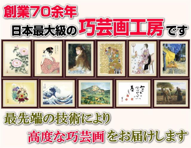 | 名画を通してより多くの方々に芸術の神髄に触れていただきたいという気持ちから、長い試行錯誤の結果、ついに最先端の技術により、高度な巧芸画の完成にいたりました。 |