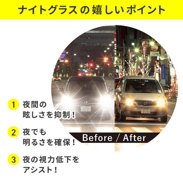 【お得クーポン配布中】 夜専用メガネ NIGHT GLASS ナイトグラス スマートタイプ 【東海光学】専用ケース付 夜間 夜用 メガネ レンズ 眼鏡 夜の運転 ディスチャージ 夜間運転 ドライブ サングラス スポーツ観戦