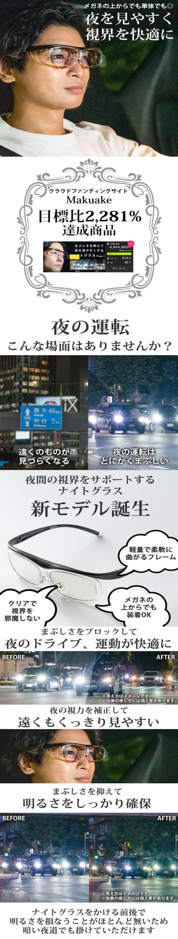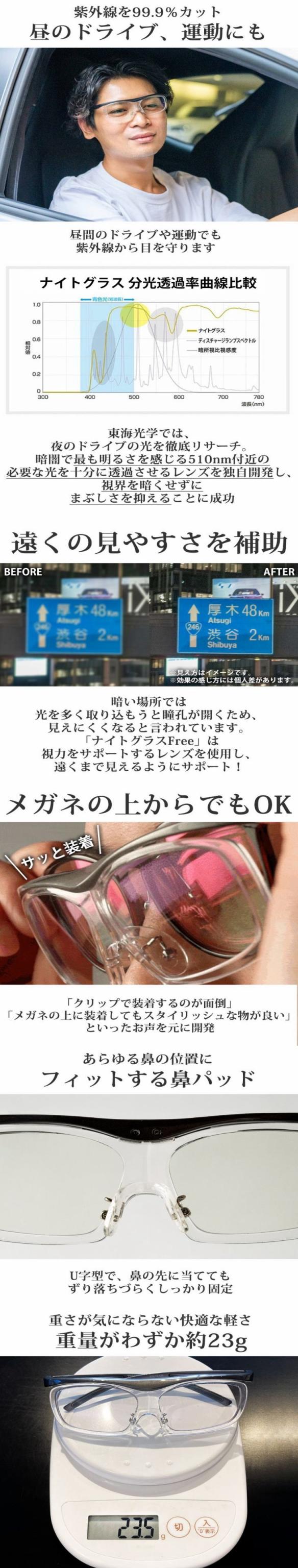 夜専用メガネ NIGHT GLASS ナイトグラス フリー 東海光学 専用ケース付 夜間 夜用 メガネ レンズ 眼鏡 夜の運転 ディスチャージ 夜間運転 ドライブ サングラス スポーツ観戦