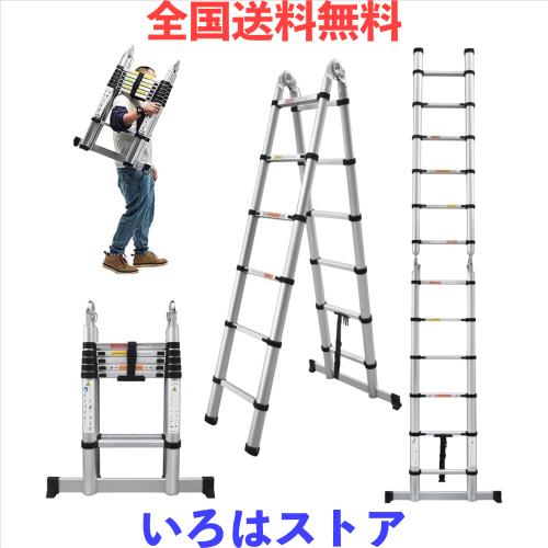 DayPlus 伸縮脚立はしご両用脚立1.9m+1.9m 伸縮はしご最長3.8m 兼用脚立 スーパーラダー 折り畳み伸縮梯子 多機能アルミはしご 持ち運び