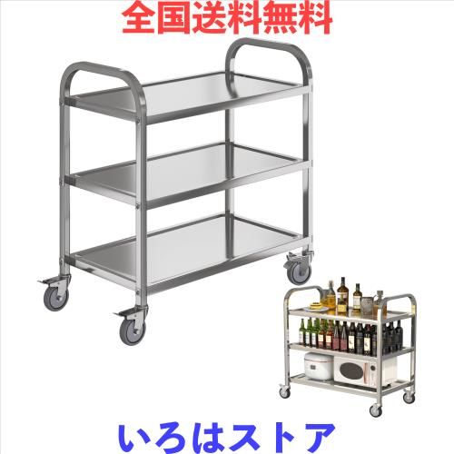 ◆商品名:ybaymy サービスカート キッチンワゴン 配膳車 組立式 サービスワゴ ン ステンレス製 3段 配膳ワゴン ホイール付き キッチントローリー