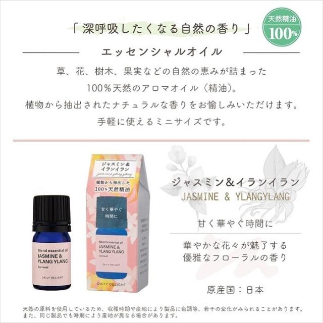 アロマ 精油 デイリーディライト エッセンシャルオイルS ジャスミン&イランイラン ブレンド 天然精油100% 遮光ボトル 無添加 日本産 アロマオイル フレグランス アロマテラピー ディフューザー対応 アロマスプレー対応