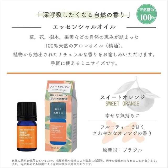 アロマ 精油 デイリーディライト エッセンシャルオイルS スイートオレンジ 天然精油100% 遮光ボトル 無添加 ブラジル産 アロマオイル フレグランス アロマテラピー ディフューザー対応 アロマスプレー対応