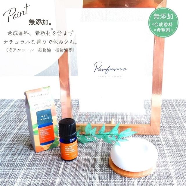 ・無添加であり、合成香料や希釈剤(アルコール・鉱物油・植物油)を不使用。