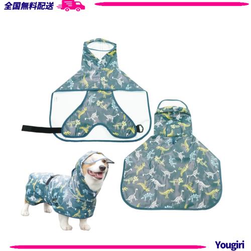 GIIPET-犬用レインコート 2WAYペット用レインコート 犬 猫 完全防水 速乾 犬ドッグカッパ ポンチョ 梅雨対策 透明帽子付き (ダイノソア,