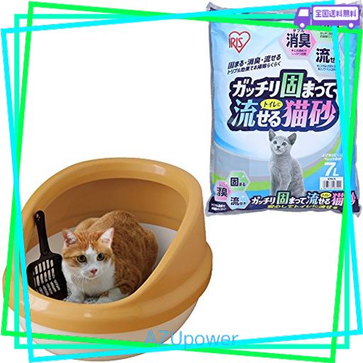 アイリスオーヤマ 猫トイレ 猫 トイレ ハーフカバー (スコップ付き) 三毛 P-NE-500-H