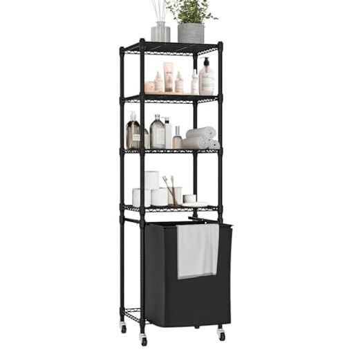 ランドリーラック 洗濯かご 収納ラック 洗濯機ラック 5段 バスケット付き 2種類の組み立て ブラック W40XD30XH129CM
