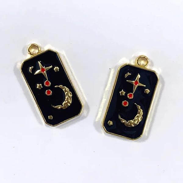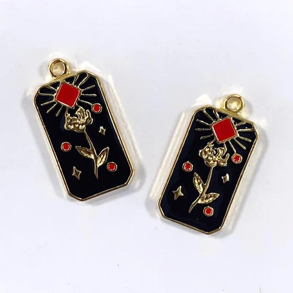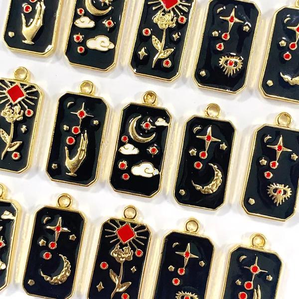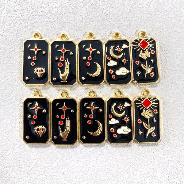 アロイエナメルブラックタロットカード,10個,ピンクの花,太陽,月,ネックレス用ペンダント,イヤードロップブレスレット,DIYジュエリー