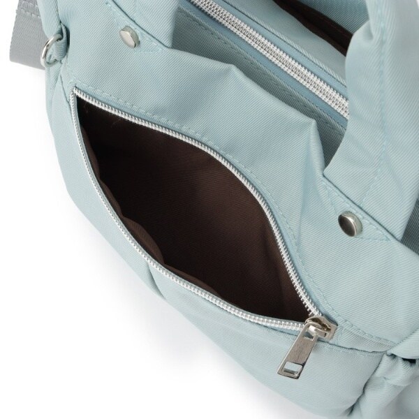 フロントのファスナーポケット、サイドのオープンポケット、メイン収納の前後にあおりポケット、背面のポケット、内側の内装ポケットと、荷物の仕分けに便利な多ポケット仕様です。