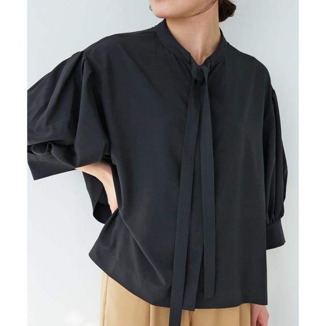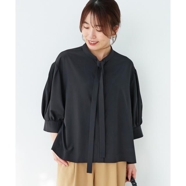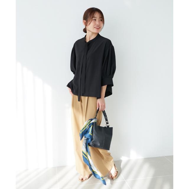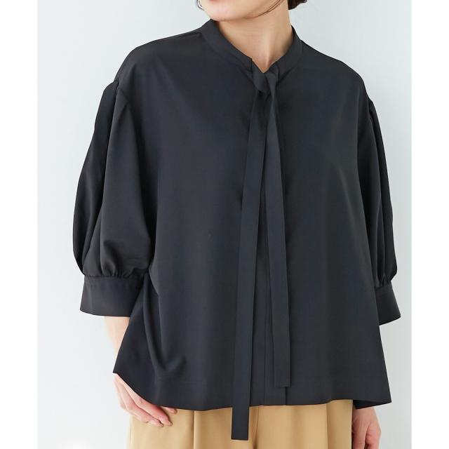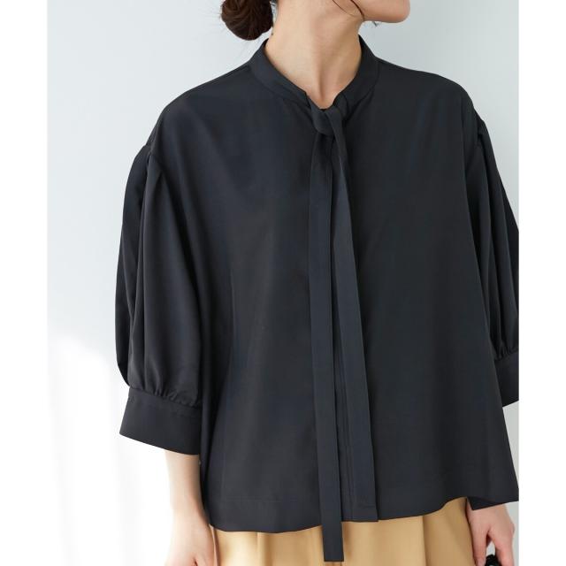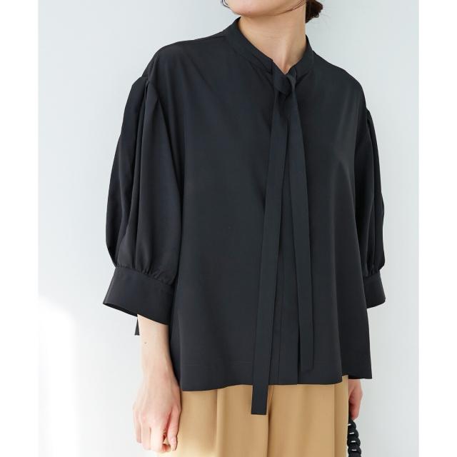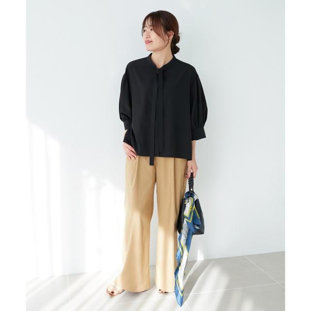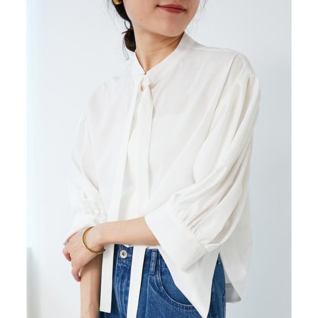 ボウタイデザインがフェミニンな印象のブラウス。