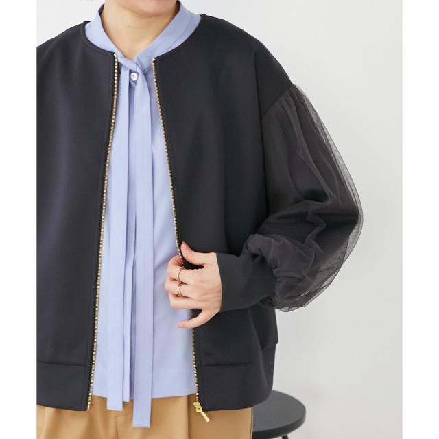 素材感: しっとり滑らかな生地。ストレッチが入り動きやすい。二の腕をカバーしてくれるパフスリーブと袖丈が嬉しい。