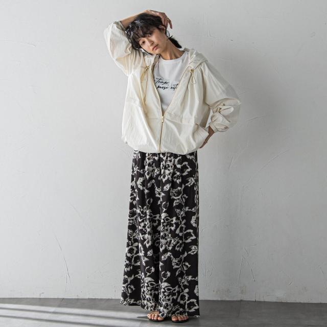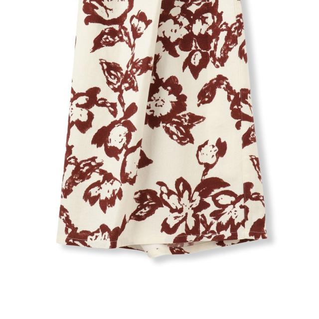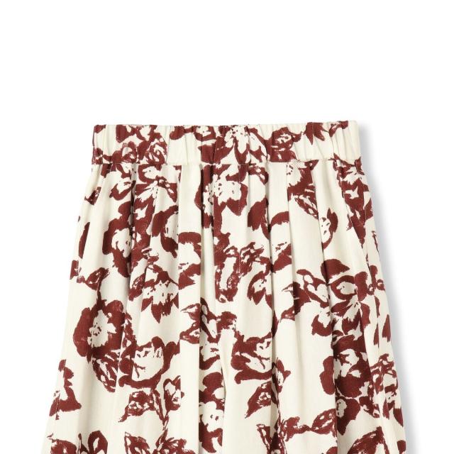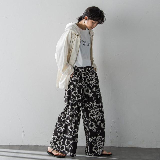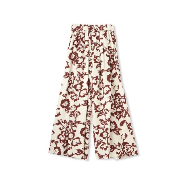 ニュアンスのあるタッチで描かれたフラワープリントがこなれた印象の、タックワイドパンツ。