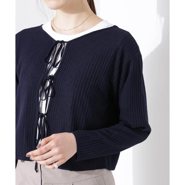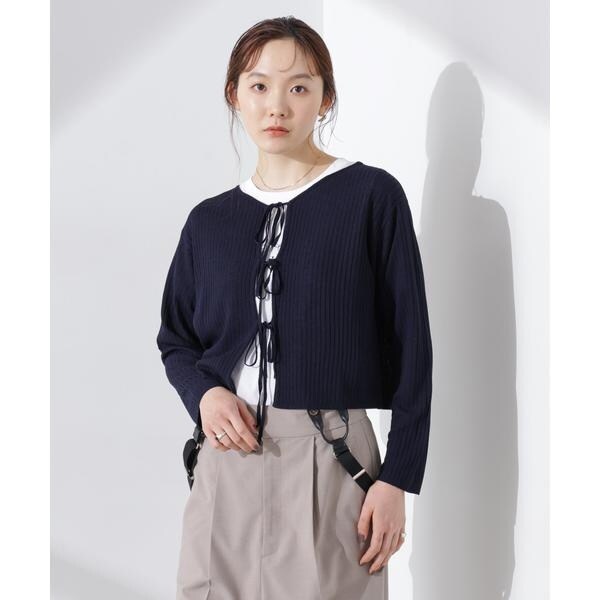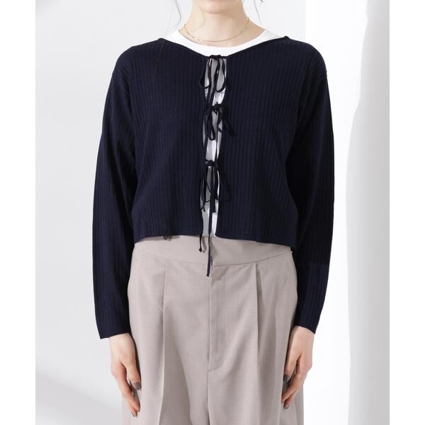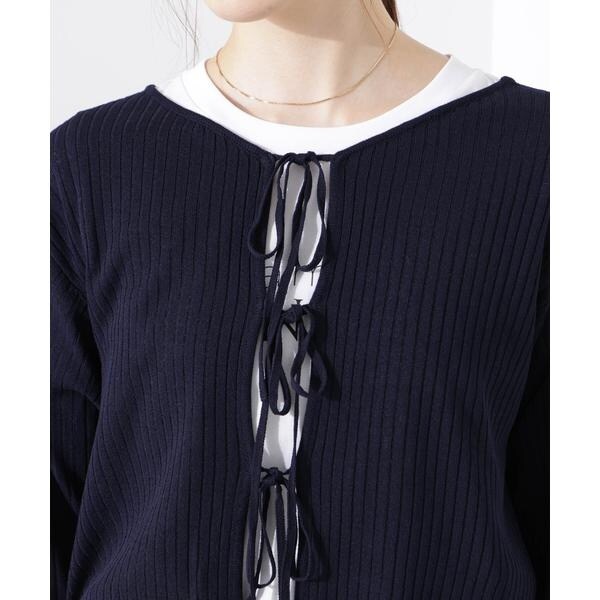 前後2wayリボン開きカーディガン