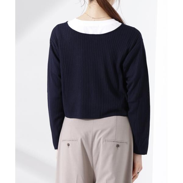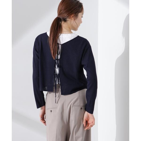 トレンド感のあるリボン開きデザインが目を引く前後2wayのニット。リボンを外して前を開けてカーディガンとして合わせたり、リボンを背中面にしてトップスとして合わせたり、クローゼットに備えておくと着こなしの幅が広がるアイテムです。