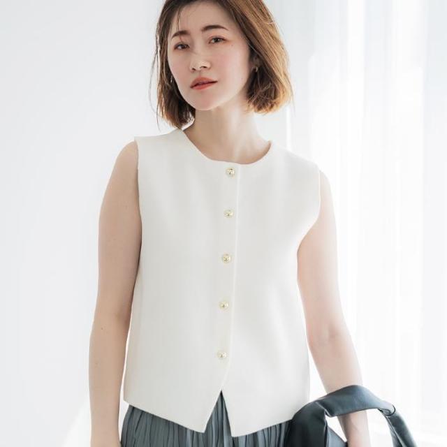 上品なゴールドボタンがアクセントのノースリーブベスト