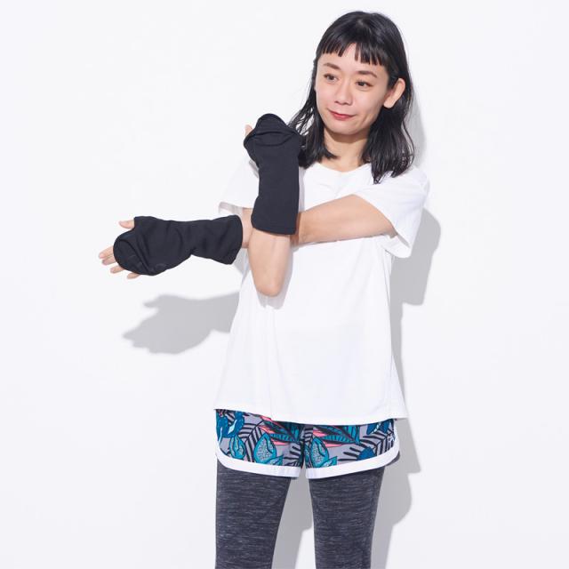 吸湿・放湿・吸汗・速乾・UVカット・接触冷感機能を用いたハンドカバー。