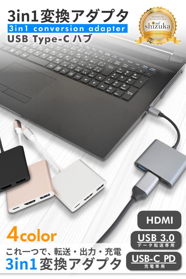 3in1 変換アダプタ 「 Type-C = HDMI・USB 3.0・Type-C (USB-C PD) 」